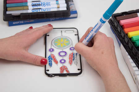 En este taller te enseñaremos con la gama de rotuladores Giotto Decor, ideales para pintar cualquier superficie, dos decoraciones diferentes para la funda de tu móvil: muy bonitas, coloridas y fáciles de realizar. Pinta siempre por la parte interior de la funda. Así, cuando pongas el móvil, te quedará el dibujo protegido.