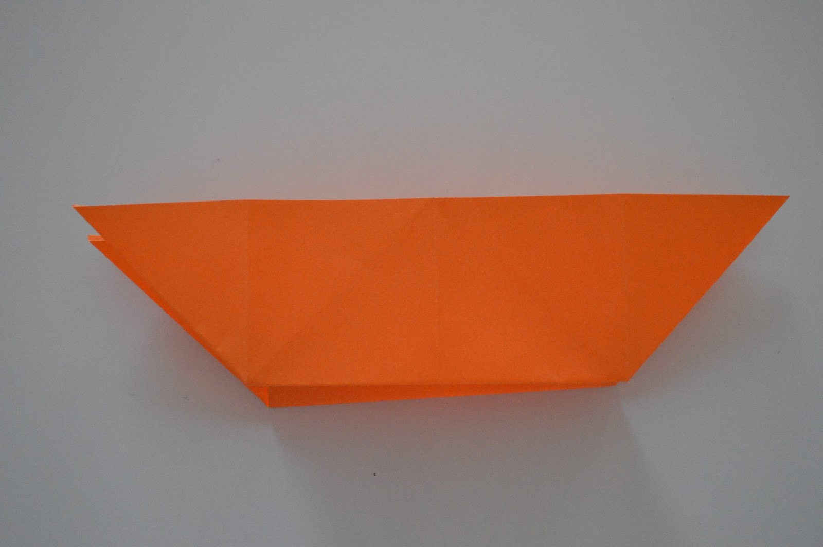 5. Abre las esquinas de la parte superior hacia el exterior, haciendo que concuerde el pliegue con el centro marcado anteriormente, y después tienes que repetirlo en la parte inferior.