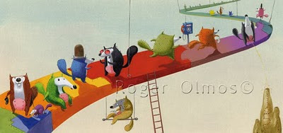 Y es que por arte de magia ha aparecido este cuento en el que «hay grandes y pequeños. Dormidos y despiertos. Unos recién nacidos… y otros que eran muy viejos. Había de todos los colores: negros, azules, marrones… Unos con gafas y otros con sombrero. Unos a los que les gusta escribir cartas, otros que juegan al pañuelo y otros más que hacían pis sobre un hormiguero. ¡El cuento estaba lleno de lobos!