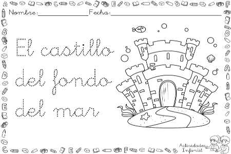 En esta ocasión el castillo que os dejamos es el de la Sirenita. Un bonito castillo en el fondo del mar para que los peques pinten y repasen el trazo de las letras.