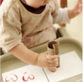 Fijaos de que manera tan sencilla podemos repartir cariño entre nuestros seres más queridos. Solo hace falta doblar un rollo de papel higiénico  mojarlo en pintura y estamparlo en un papel. Podemos añadir un pequeño mensaje que los peques copien y los papis quedarán encantados con la obra de arte de sus hijitos.