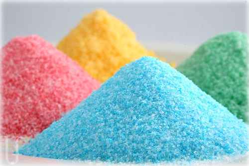 El azúcar de colores es un estupendo recurso que tenemos a mano para realizar bonitos trabajos plásticos. Os explicamos cómo podéis teñirla de diversos colores para tener una bonita variedad cromática y realizar estupendos trabajos manuales con los peques.